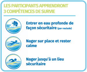Apprendre les habiletés essentielles pour survivre en milieu aquatique.